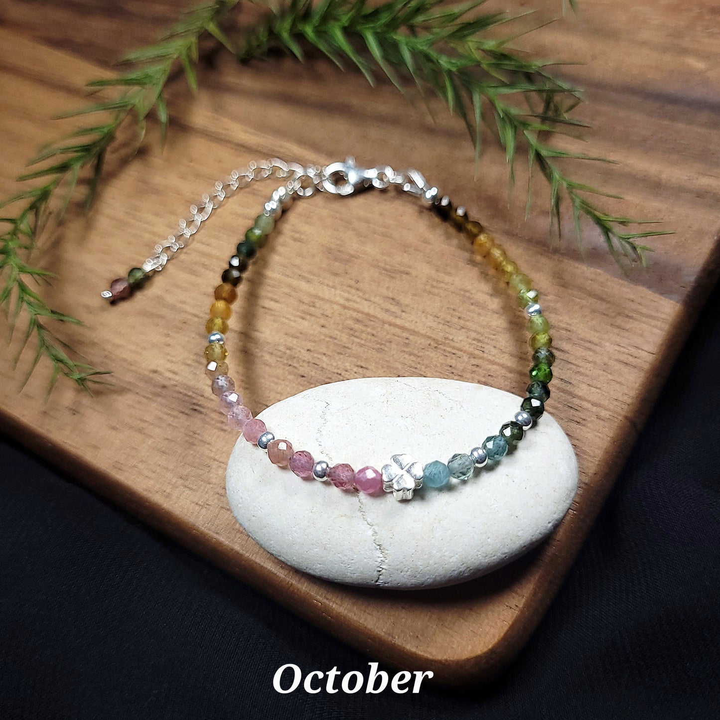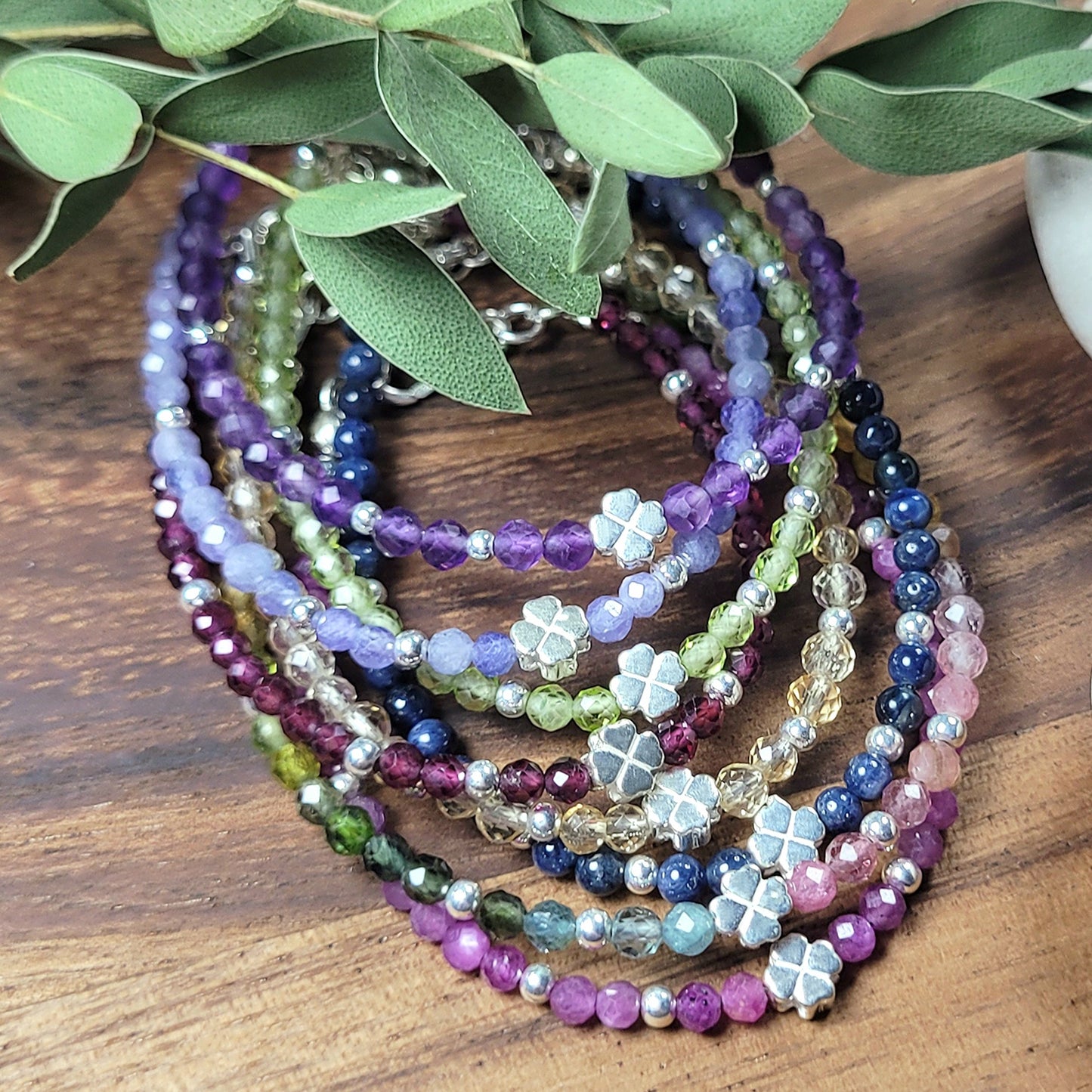 Siro ja kimalteleva hopearannekoru oman syntymäkuukautesi puolijalokivistä. Tämä onnenkoru toimii loistavasti myös uniikkina lahjaideana läheiselle.