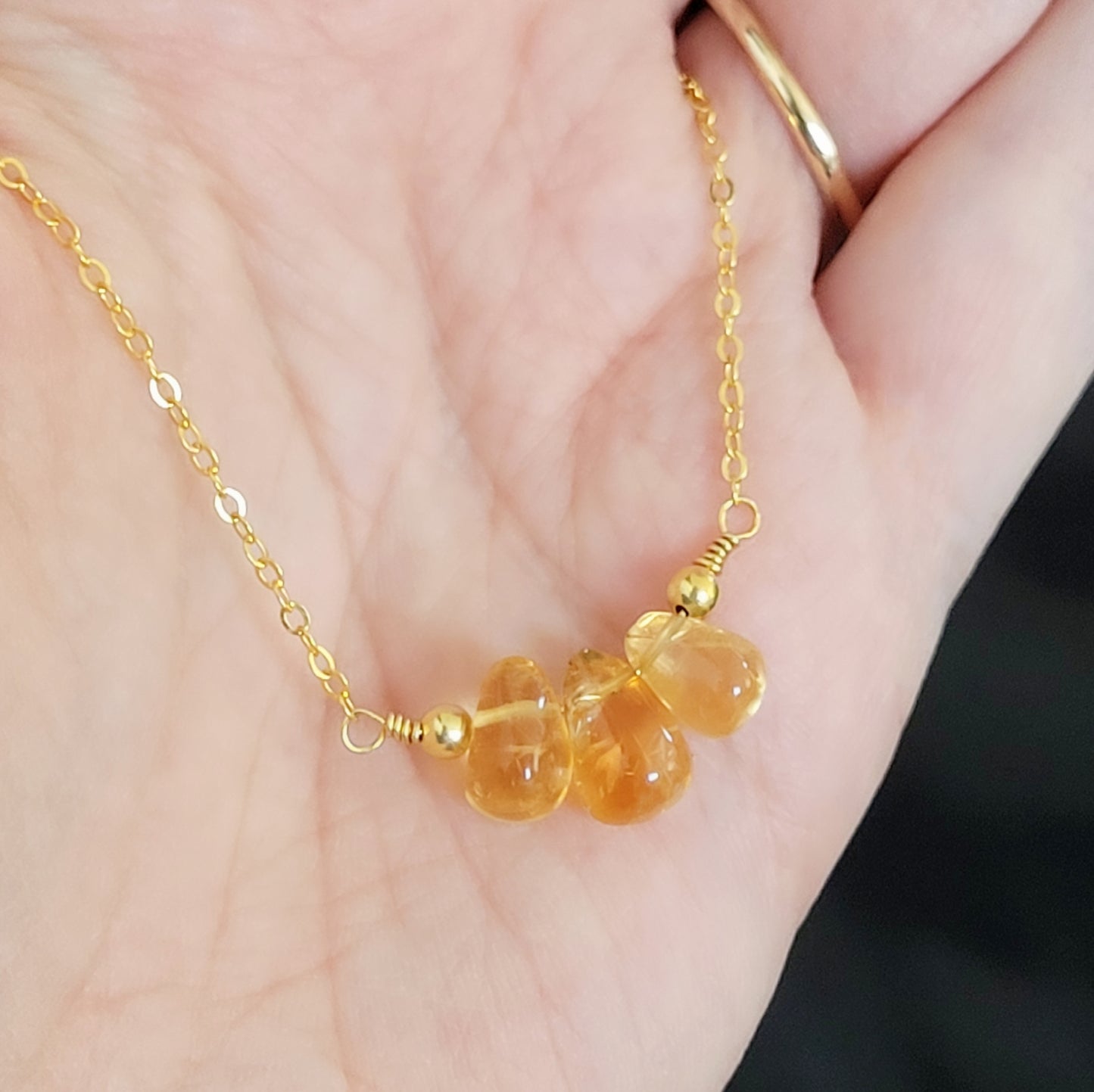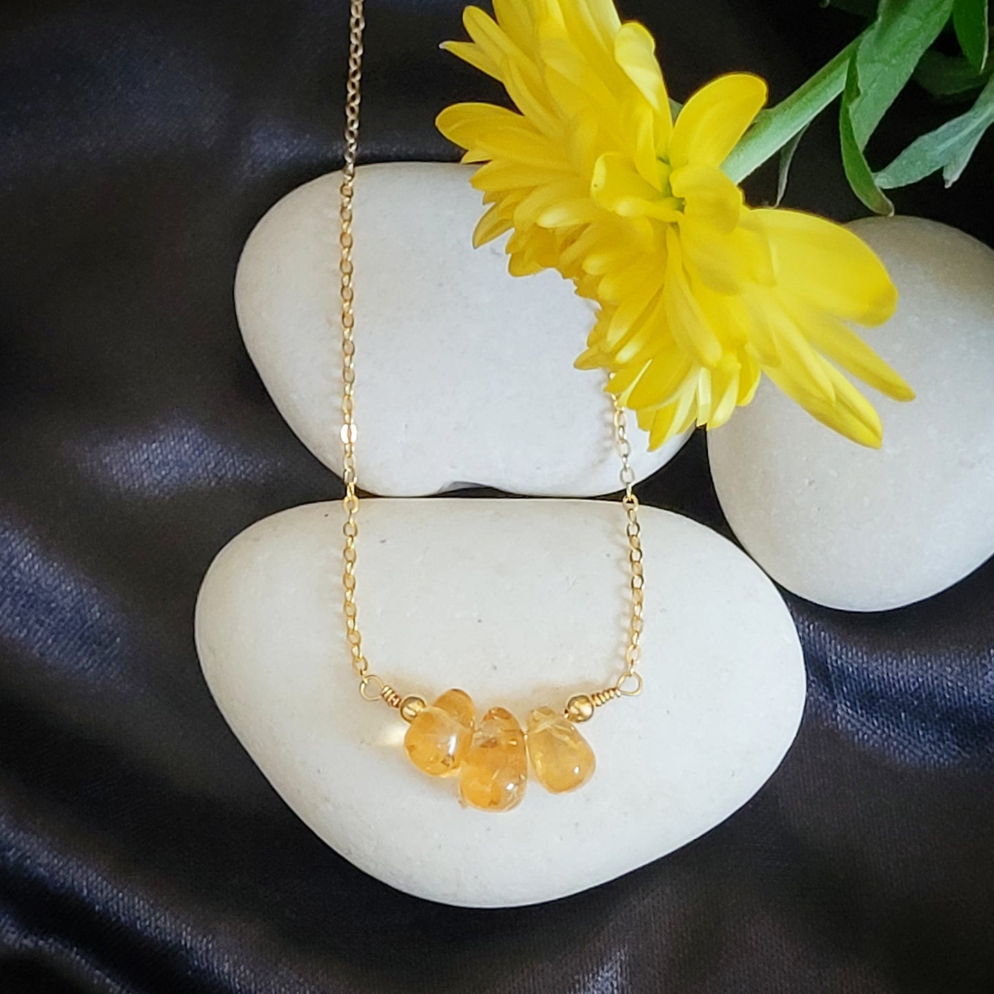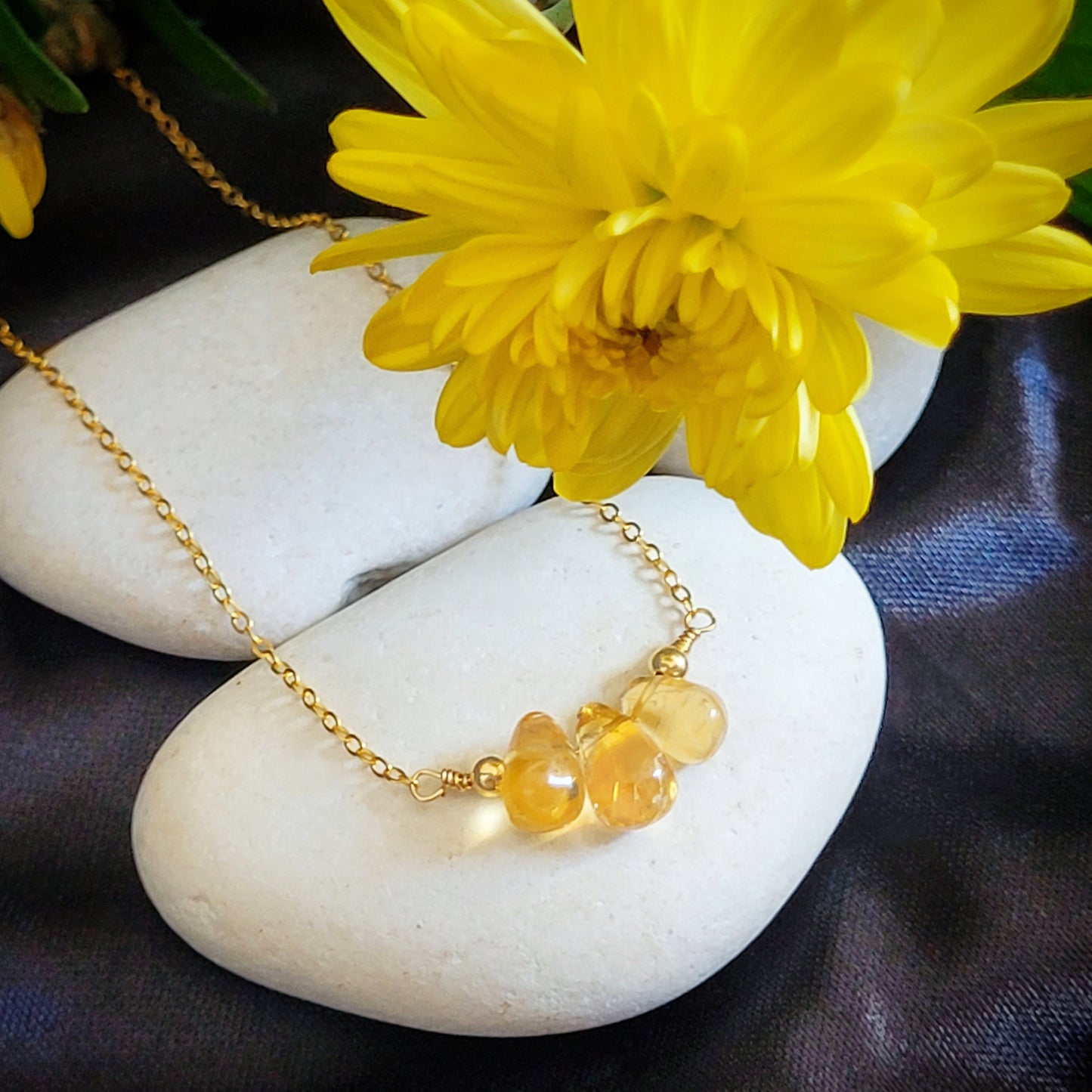 Herkullisen hunajan värinen kivikaulakoru aidoista sitriinipisaroista ja kullatusta sterling-hopeasta (925).